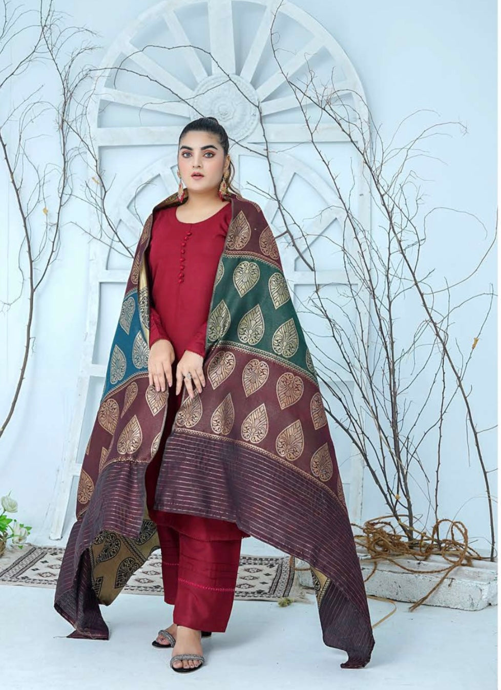 (155) Pakistani Dhanak Contrast Shawl Suit | Autumn Winter Ready to Wear